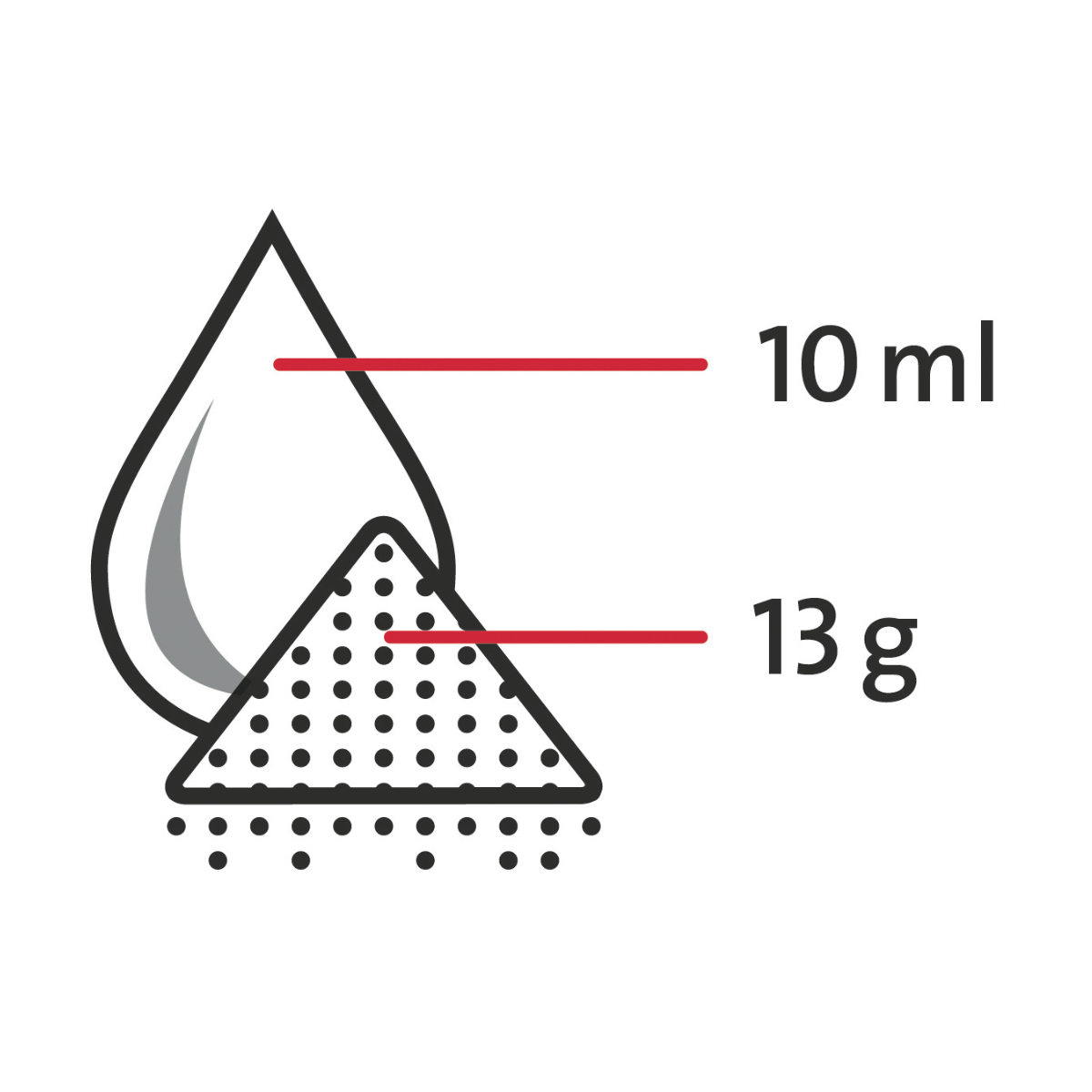 Mischungsverhältnis für eine Prothese: 13 g Polymer : 10 ml Monomer