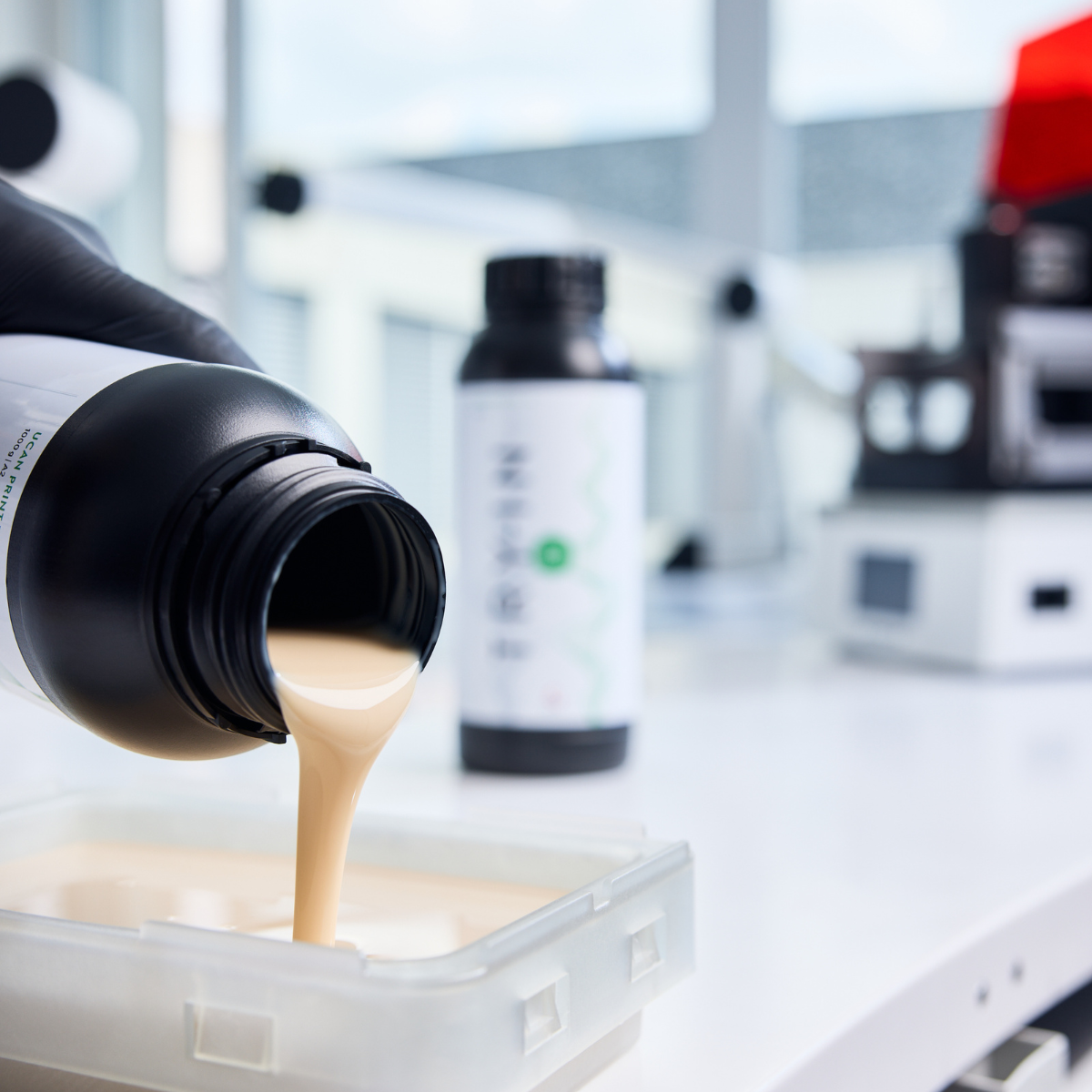 So überzeugt dieses Druckharz insbesondere im direkten Vergleich um seine bis zu 75 % höhere Schlagzähigkeit (nach ISO 180/U). Durch den Einsatz eines neuartigen Initiatorsystems ist eine weitere Stärke die Biokompatibilität und somit die klinische Sicherheit.