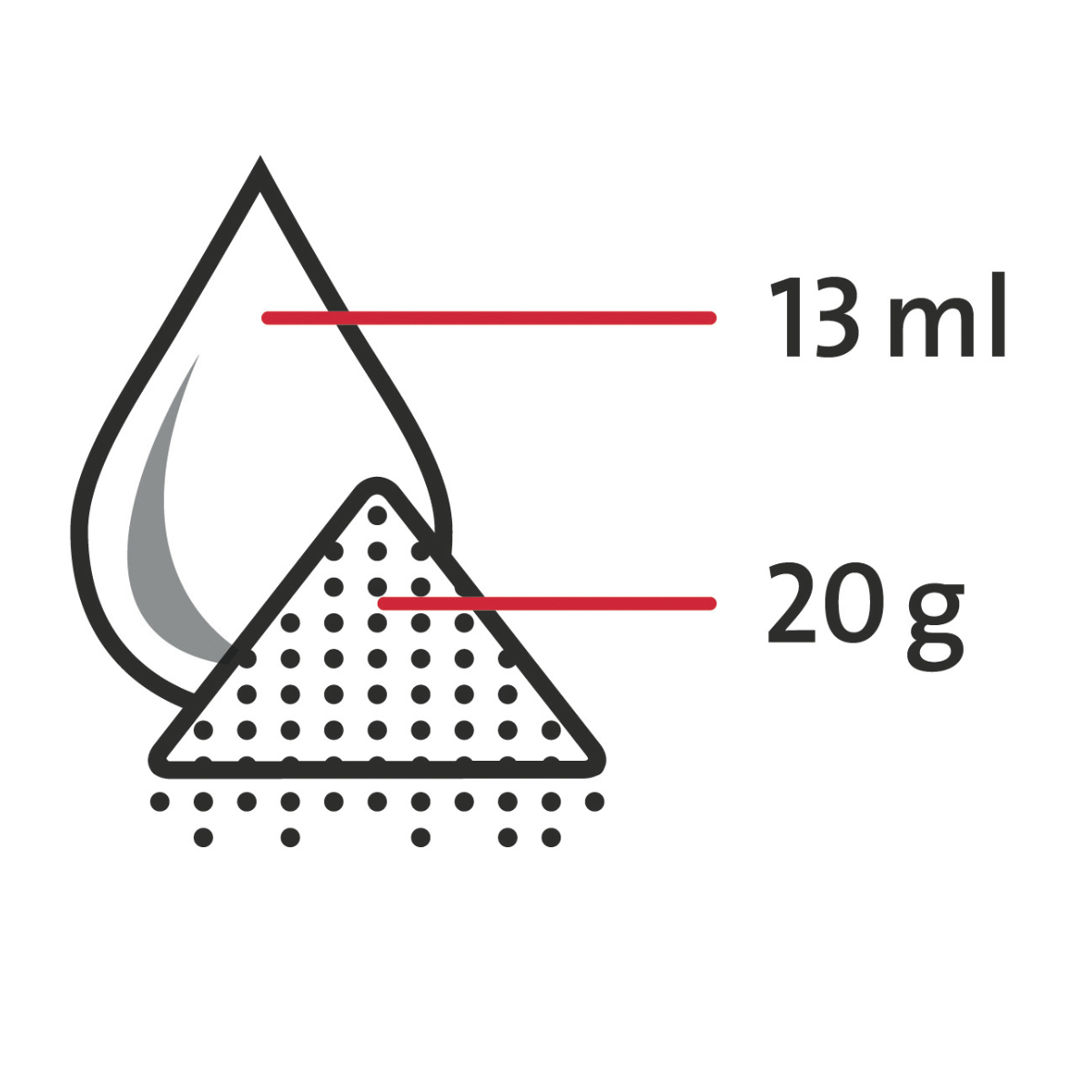 • Kaltverarbeitung Stopftechnik: Mischungsverhältnis für eine Prothese: 20 g Polymer : 13 ml Monomer