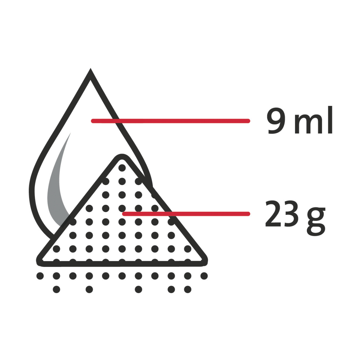 • Heissverarbeitung Stopftechnik: Mischungsverhältnis für eine Prothese: 23 g Polymer : 9 ml Monomer